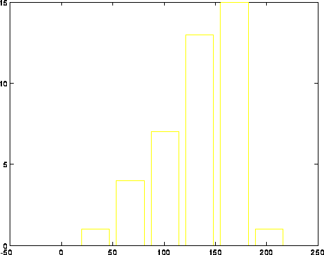 Mean: 134.7, Standard Deviation: 33.8. Approximate Assignment of letter grades: F: < 50.2; D: 50.2-84.0; C: 84.0-117.8; B: 117.8-151.6; A: 151.6-185.4; A+: > 185.4.