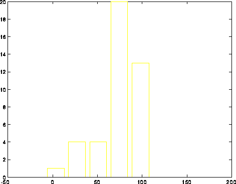 Mean: 74.5, Standard Deviation: 23.6. Approximate Assignment of letter grades: F: < 15.5; D: 15.5-39.1; C: 39.1-62.7; B: 62.7-86.3; A: 86.3-109.8; A+: > 109.8.